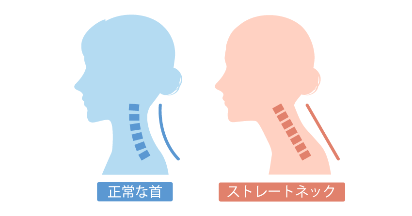 しかし産後の生活では、このカーブが失われやすく、首が真っ直ぐになる「ストレートネック」状態に。